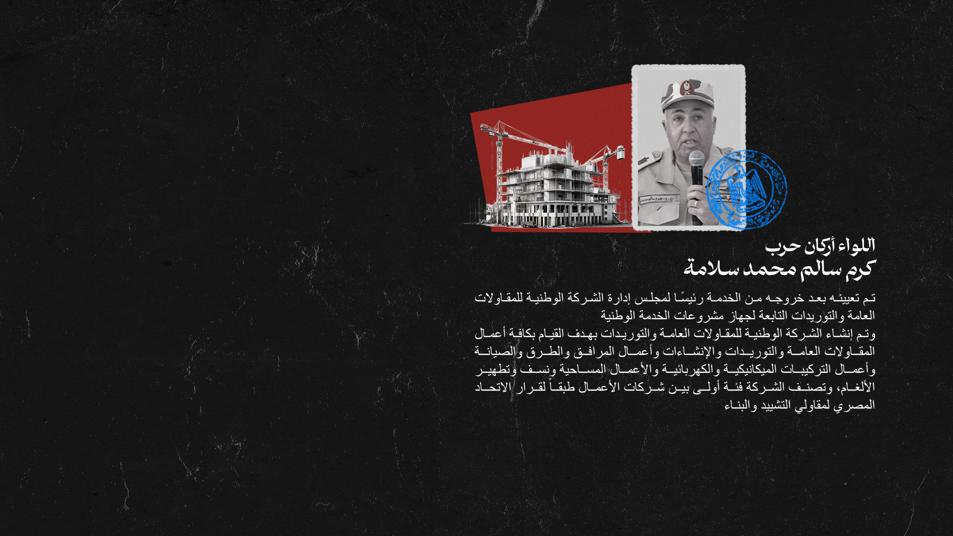 أحد قيادات الجيش واختاره السيسي كرئيس للشركة المصرية للتعدين وإدارة واستغلال المحاجر والملاحات، التابعة لجهاز مشروعات الخدمة الوطنية